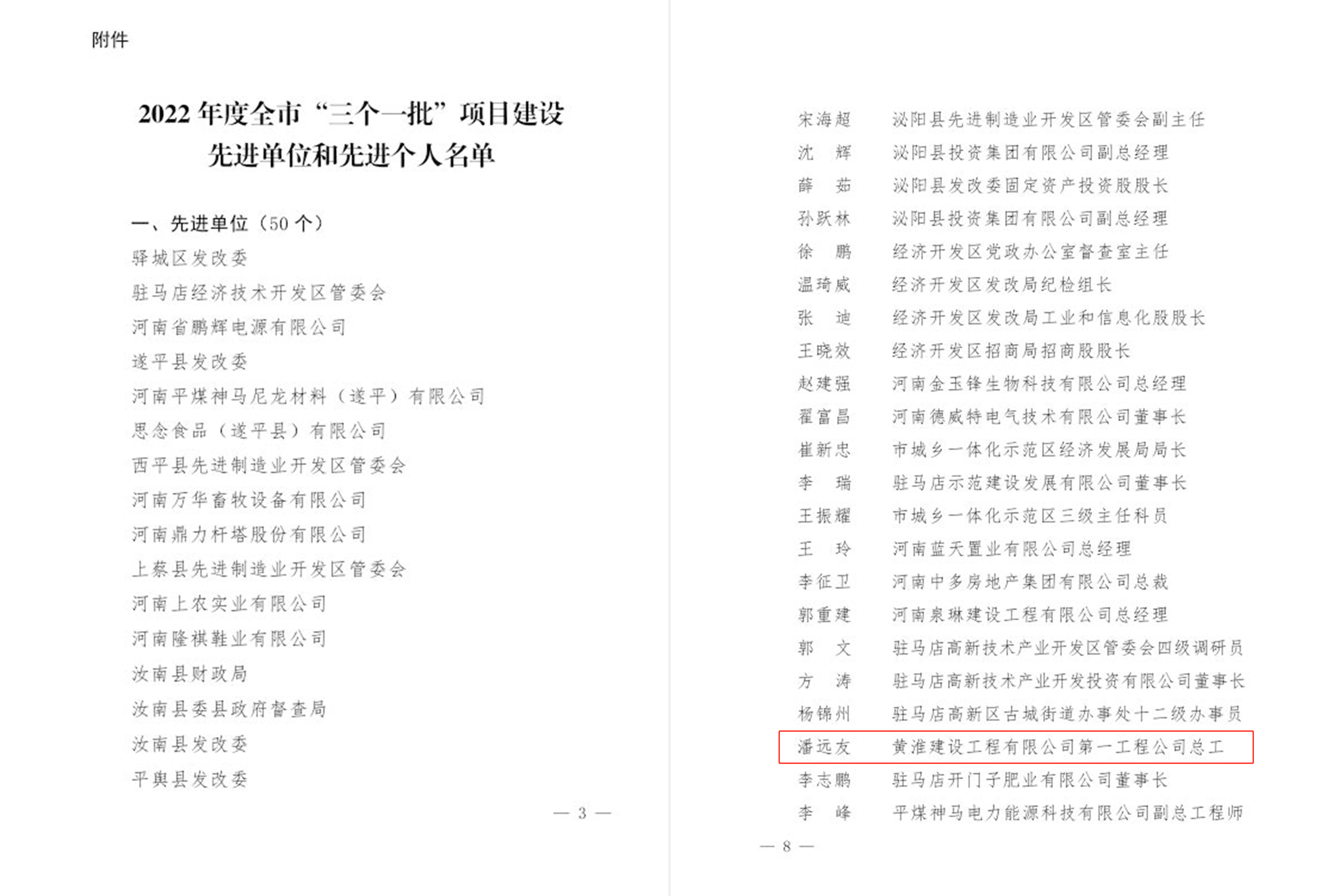 近日,中共駐馬店市委、駐馬店市人民政府下發(fā)了《關(guān)于表彰2022年度全市“三個(gè)一批”項(xiàng)目建設(shè)先進(jìn)單位和先進(jìn)個(gè)人的決定》,市黃淮建工第一工程公司總工程師潘遠(yuǎn)友同志榮獲2022年度全市“三個(gè)一批”項(xiàng)目建設(shè)先進(jìn)個(gè)人稱號(hào),這份榮譽(yù)不僅是對(duì)市黃淮建工項(xiàng)目建設(shè)中取得的成績(jī)給予充分肯定,更是對(duì)公司全體員工的鼓舞和鞭策。